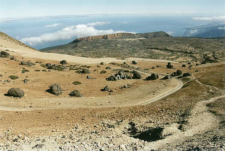 erstarrte Lava-Bomben. Im Hintergrund die Fortaleza, 2.159m. Der